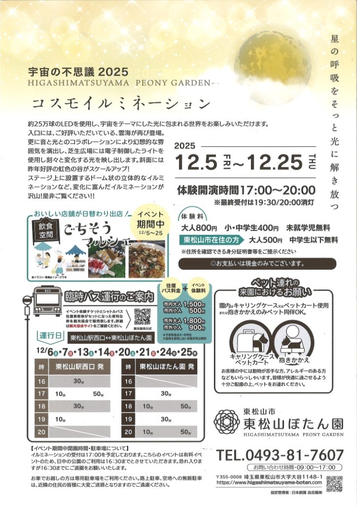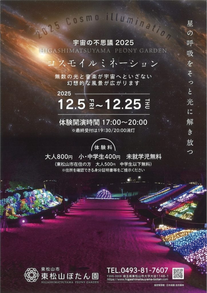 昨年好評をいただいた東松山ぼたん園のイルミネーションを今年も開催!