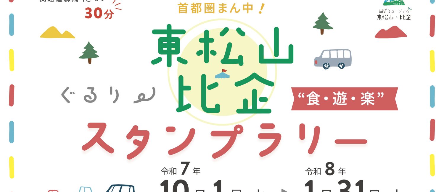 東松山・比企広域観光推進協議会がJAF、NEXCO東日本、FMNACK5の協力で実施する東松山市及び比企地域観光スポット34箇所を巡るデジタルスタンプラリーです。