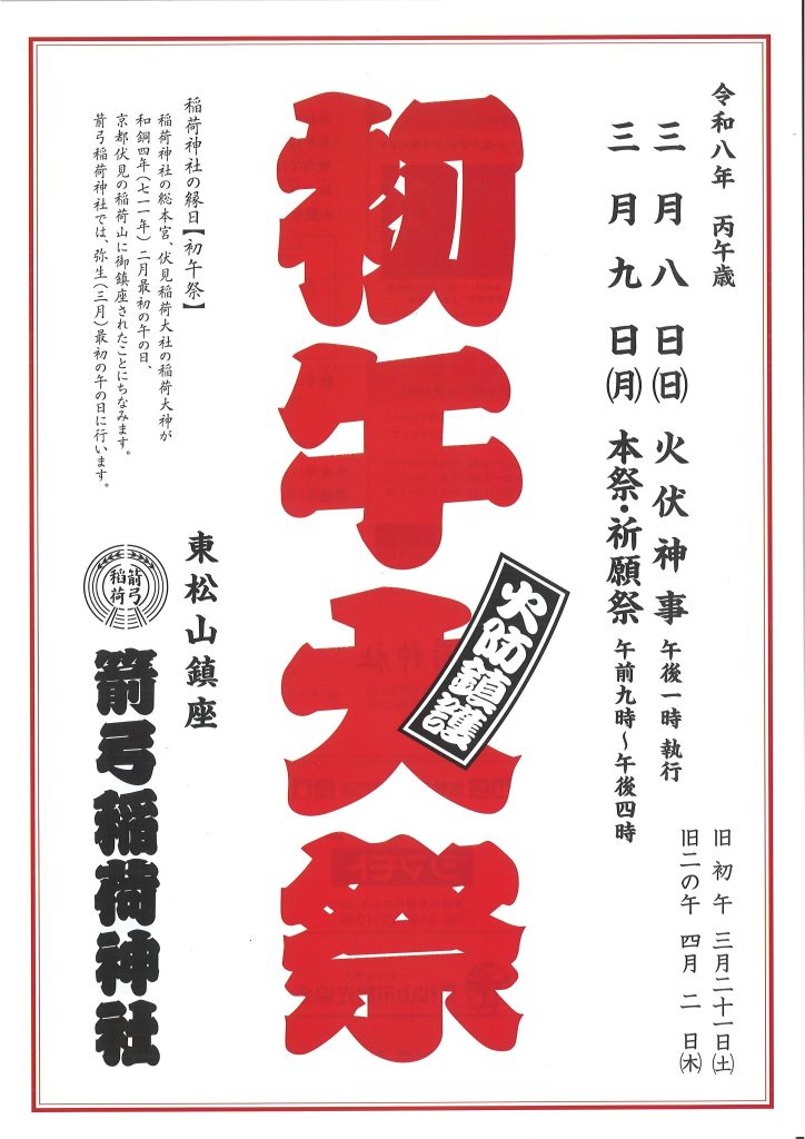 箭弓稲荷神社初午祭は月遅れの3月の最初の午の日が例大祭になります。
