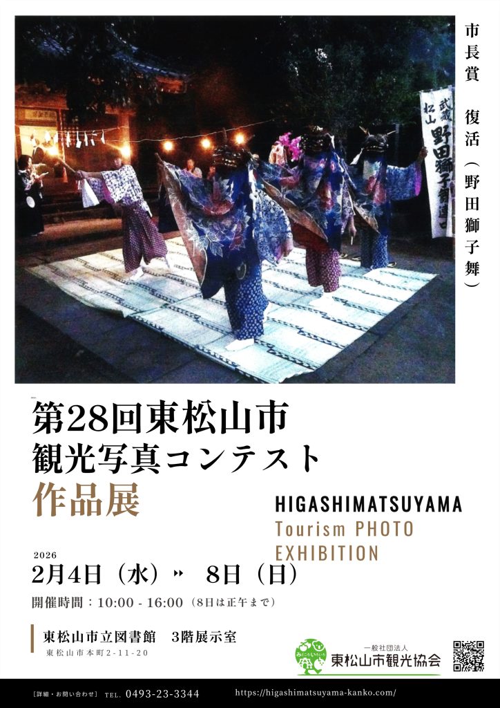 東松山市の四季を通じて、花や自然、祭りや地域の行事、文化財などの良さを見直し、市の観光資源の認識および情報発信に役立てる事を目的とし、東松山の観光写真を募集しました。